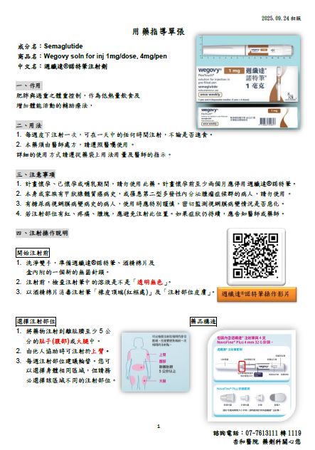 Wegovy週纖達諾特筆用藥指導單張
